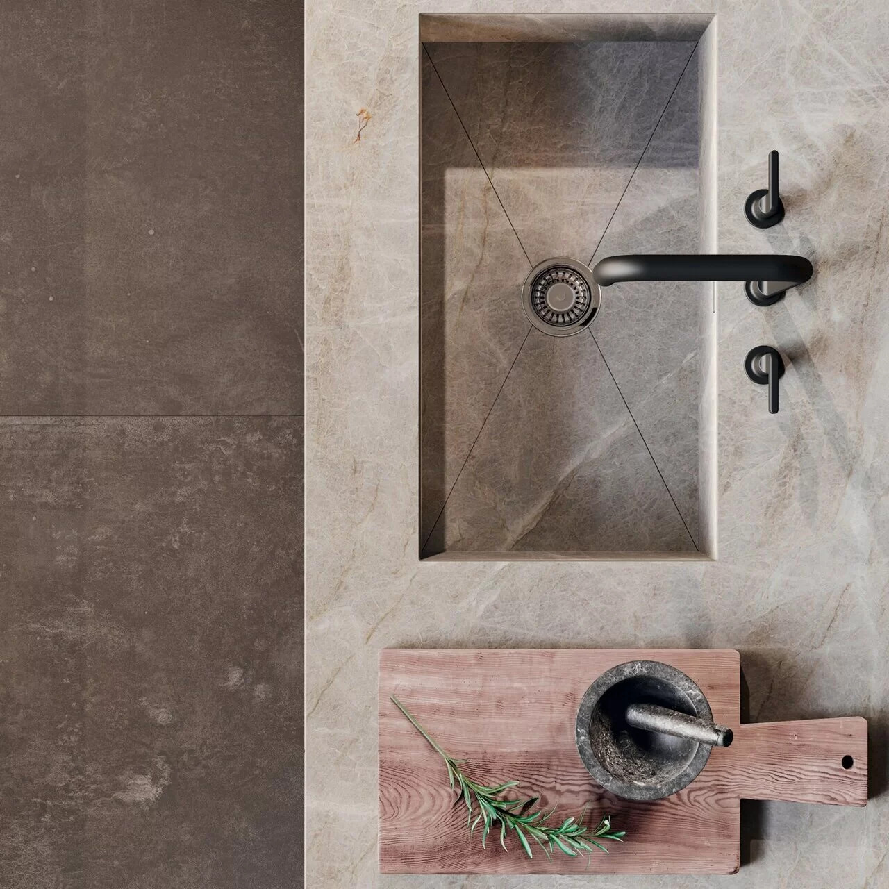 L’assortiment de la couleur de la cuve avec celle du plan de travail crée une continuité visuelle, donnant l’impression d’un espace plus vaste et plus ouvert. Cette uniformité de couleur et de matériau entre la cuve et le plan de travail ajoute une touche de sophistication et de minimalisme, mettant en valeur le design global de la cuisine.