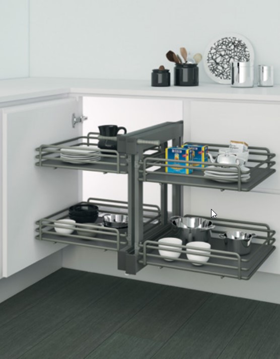 Les meubles d’angle, grâce à leur conception ingénieuse, permettent de transformer un espace autrement inutilisable en un lieu de rangement pratique et accessible. Ces unités peuvent inclure des systèmes de tiroirs pivotants ou coulissants, des étagères extractibles, et des carrousels à plusieurs niveaux, offrant ainsi un accès facile aux articles stockés.